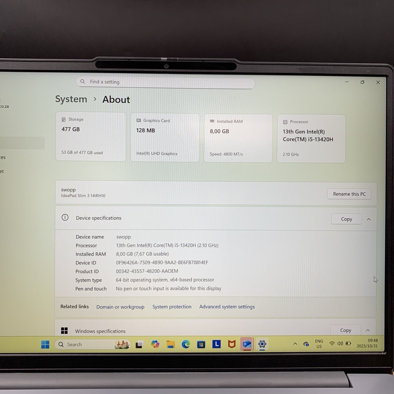 Lenovo IdeaPad Slim 3 14IRH10 | 8GB Ram | 512GB SSD | intel Core i5 |