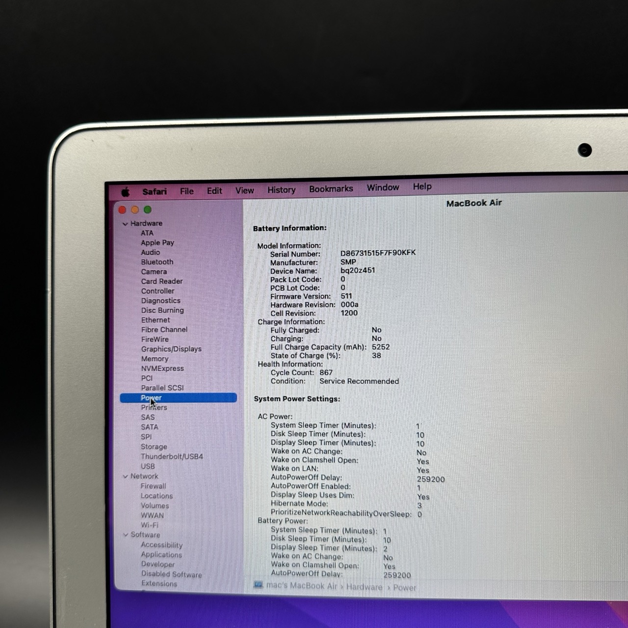 The battery health is at service and the screen is in excellent condition with very minor marks and the device’s body is in good condition with some minor signs of use
